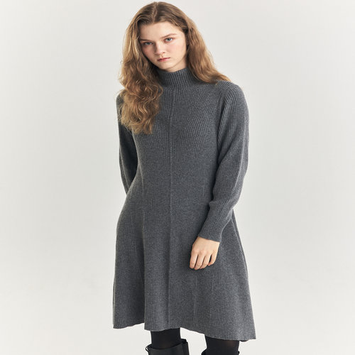헤지스 여성 24FW 클리어런스울 다크그레이 터틀넥 니트 원피스 HSDR4D903G3