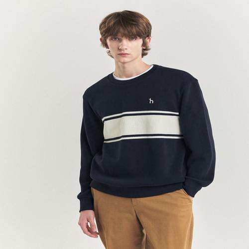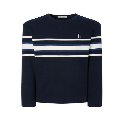 헤지스 남성 [스테디셀러] 네이비 라인배색 면 긴팔티셔츠 (WHTS4C343N2)