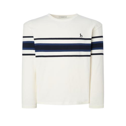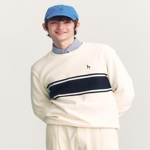 헤지스 남성 [스테디셀러] 크림 컬러배색 면 긴팔티셔츠 (WHTS4D345CR)