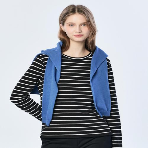 헤지스 여성 에센셜 스트라이프 긴팔 티셔츠 블랙 (HSTS5AC11BK)