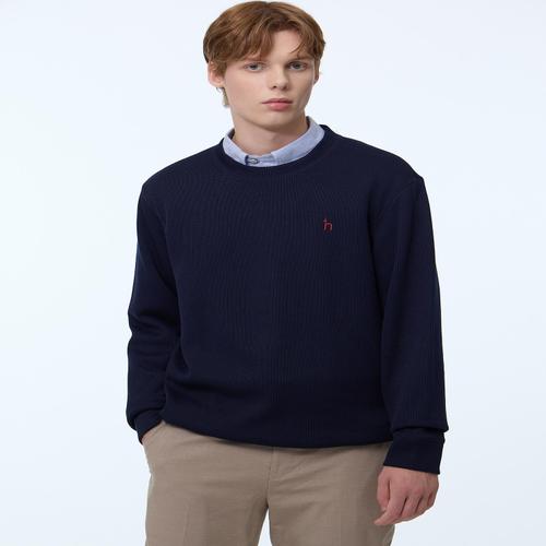 헤지스 남성 [스테디셀러] 네이비 짜임 면 긴팔티셔츠 (WHTS4D346N2)