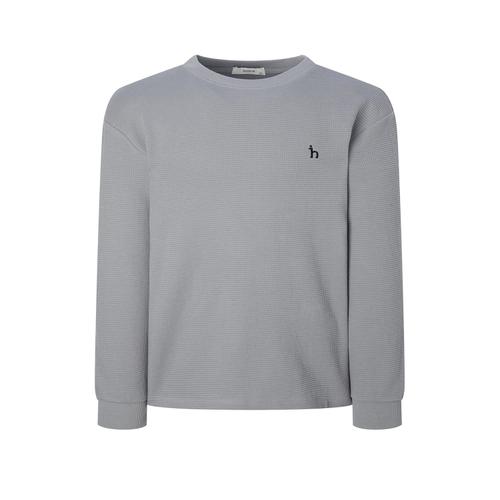 헤지스 남성 [스테디셀러] 그레이 짜임 면 긴팔티셔츠 (WHTS4D346G1)