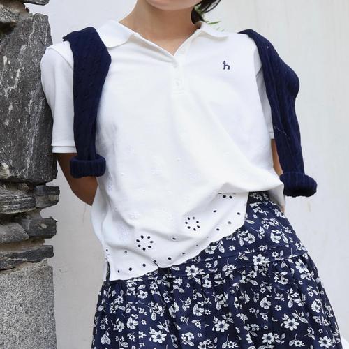 헤지스 여성 아일렛 반소매피케 티셔츠 화이트 (HSTS5B310WT)