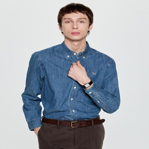 헤지스 남성 [아이코닉] 블루 워싱 면 긴팔캐주얼셔츠 (HZSH5D336B2)