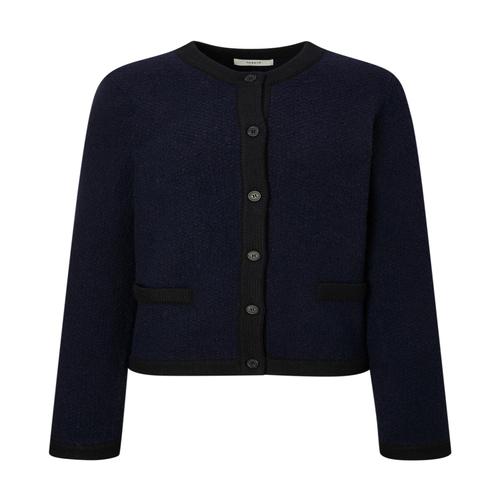 헤지스 여성 알파카 블렌디드 배색 라운드넥 가디건 다크네이비 (HSSW5D905N3)