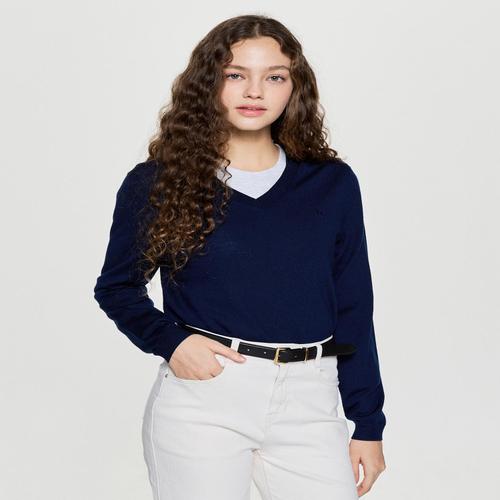헤지스 여성 울100 V넥 풀오버 다크네이비 (HSSW5DC76N3)