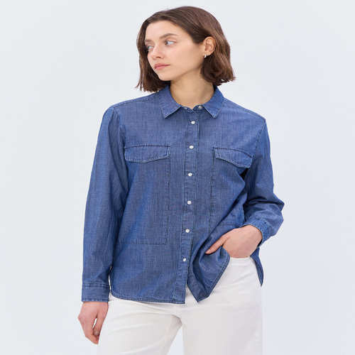헤지스 여성 [스테디셀러][데님]다크네이비 워싱 긴소매 셔츠 (WSSH5B381N3)