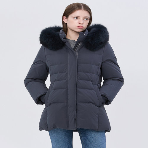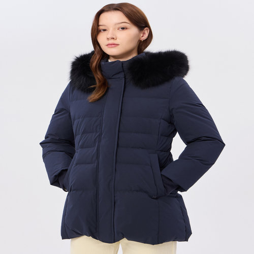 헤지스 여성 [클리어런스][스테디셀러][폭스FUR][덕다운] 네이비 탈착 후드 하프 헤비다운 점퍼 (WSJU4D109