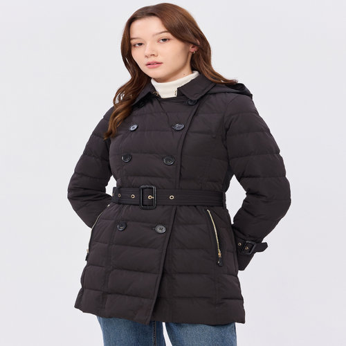 헤지스 여성 [클리어런스][스테디셀러][덕다운] 블랙 트렌치형 벨티드 롱 중량다운 점퍼 (WSJU4D922BK)