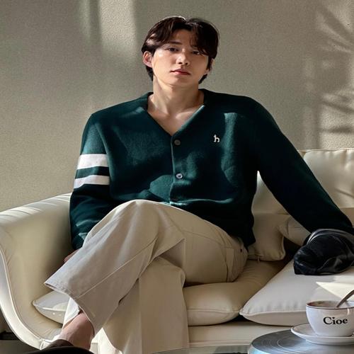 헤지스 25FW 2컬러 택1 남성 울혼방 소매 배색 라운드 가디건 HZSW5D200
