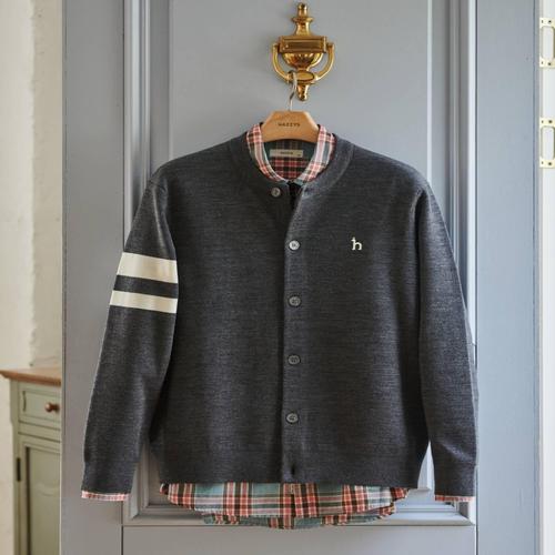 헤지스 남성 그레이 울혼방 소매 배색 라운드 가디건 (HZSW5D200G2)