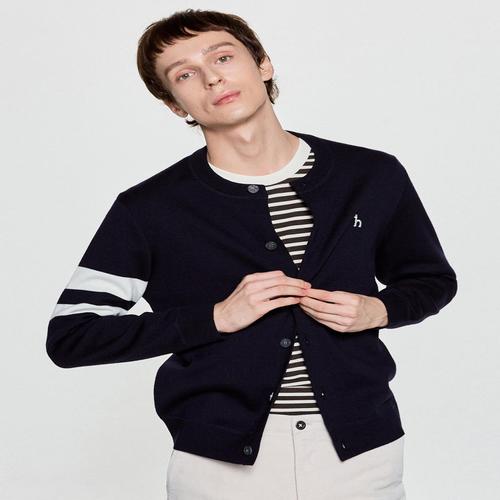 헤지스 남성 네이비 울혼방 소매 배색 라운드 가디건 (HZSW5D200N2)