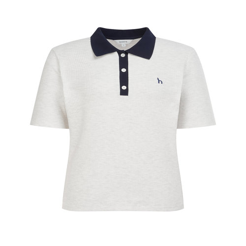 헤지스 여성 26SS 카라배색 골지 반팔 폴로 셔츠 오트밀 HSTS6B401G1