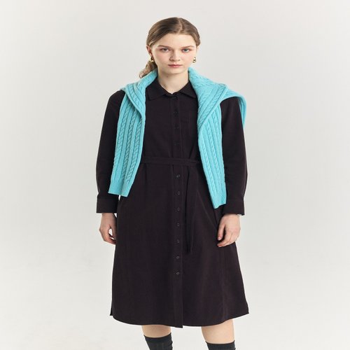 헤지스 여성 24FW 클리어런스스테디셀러코듀로이 버건디 셔츠형 원피스 WSDR4D902D3