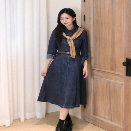 헤지스 여성 24FW 클리어런스데님 네이비 셔츠 원피스 HSDR4C703N2