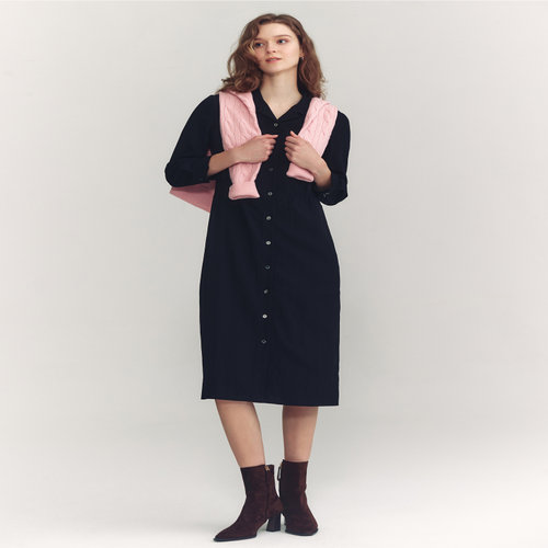 헤지스 여성 24FW 클리어런스네이비 치노 셔츠형 원피스 HSDR4D802N2