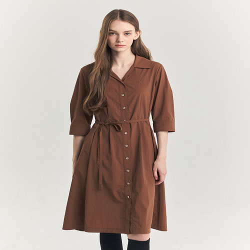 헤지스 여성 [클리어런스] 카멜 스트랩 셔츠형 7부소매 원피스 (HSDR4D801CM)
