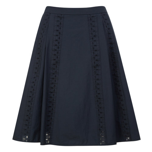 헤지스 여성 레이스믹스 플레어 스커트 네이비 (HSSK6B304N2)