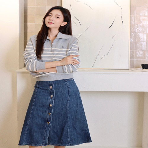 헤지스 여성 [클리어런스][데님] 블루 A라인 스커트 (HSSK4C782B2)