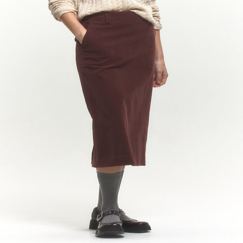 헤지스 여성 [클리어런스][코듀로이] 브라운 H라인 스커트 (HSSK4D902W2)