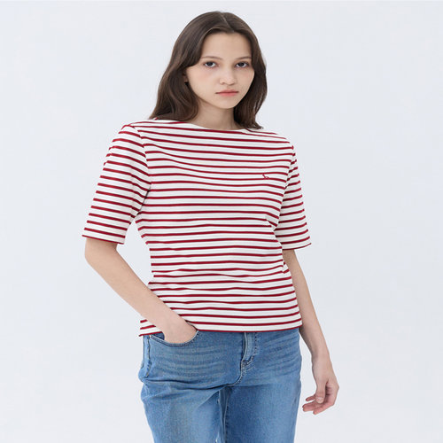 헤지스 여성 [스테디셀러][면100]버건디 스트라이프 반소매 티셔츠 (WSTS5B322D2)