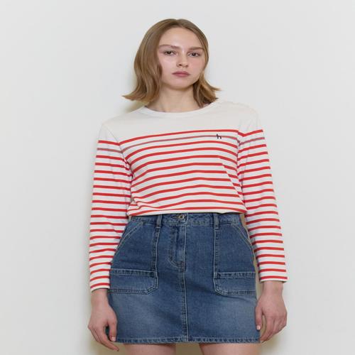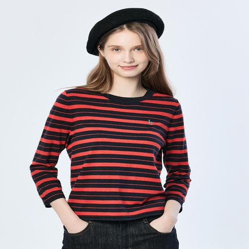헤지스 여성 버튼장식 스트라이프 긴팔 티셔츠 레드 (HSTS5A103R2)