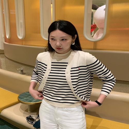 헤지스레이디스 [25FW][HSTS-5DC82] 클래식핏 니트라이크 스트라이프 스웨트셔츠