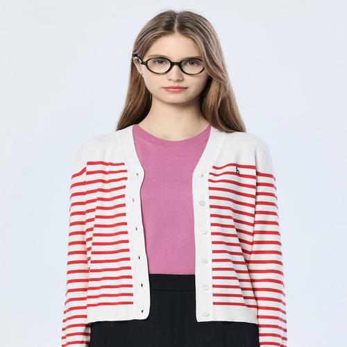 헤지스 여성 스트라이프 브이넥 폴리혼방 긴팔 가디건 레드 (HSSW5AC24R2)