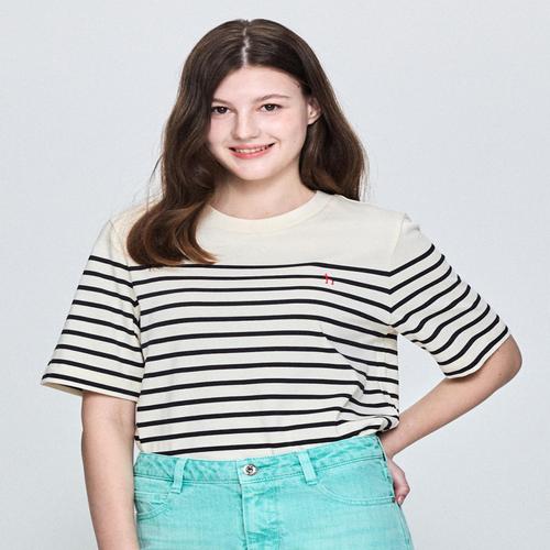 헤지스 여성 스트라이프 릴랙스핏 반소매티셔츠 아이보리 (HSTS5BC26IV)