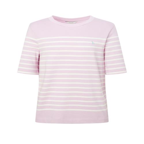 헤지스 여성 스트라이프 릴랙스핏 반소매티셔츠 라이트핑크 (HSTS5BC26P1)