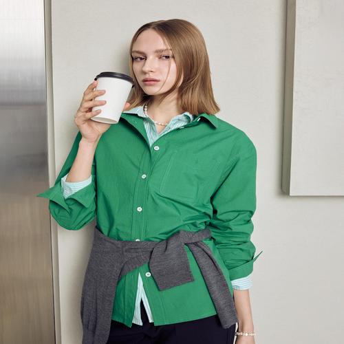 헤지스 여성 세미 오버핏 셔츠 그린 (HSSH5BP31E2)