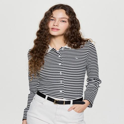 헤지스 여성 블랙 스트라이프 면 긴팔카라티셔츠 (HSTS5D812BK)
