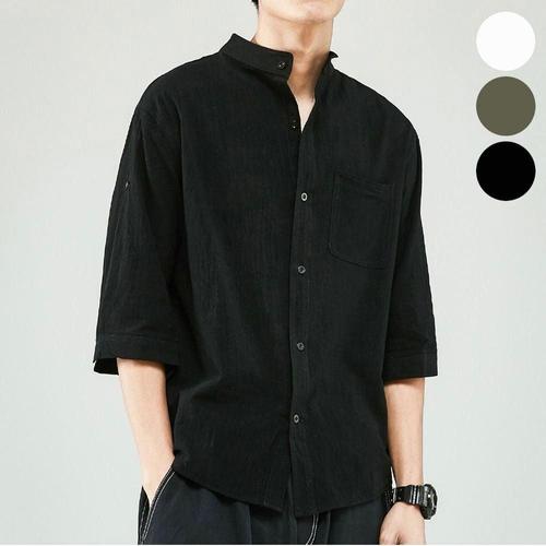 베이직 린넨 빅사이즈 헨리넥 남방 남자셔츠 7부소매 WEED4F1