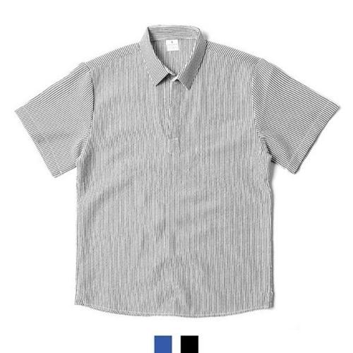 [엄지척]남자 시어서커 스트라이프 헨리넥 반팔 셔츠 여름_19610473_667501