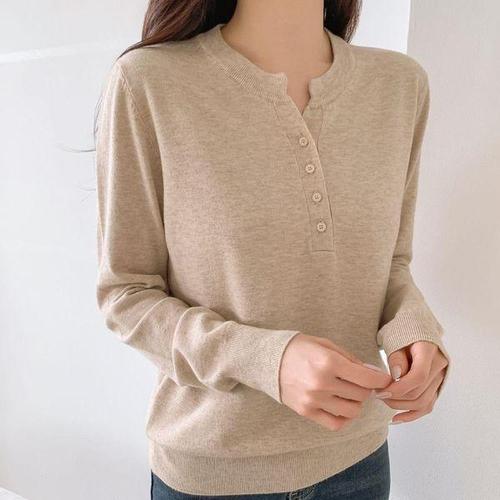 [옷자락] 여자 9컬러 데일리룩 여리핏 버튼 헨리넥 가을 니트