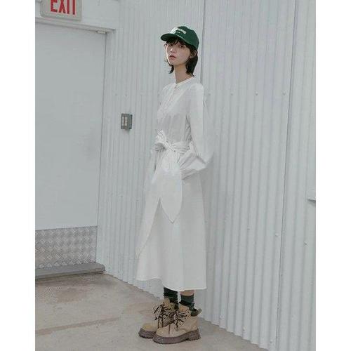 여리핏 허리조절 스트랩 셔츠 롱원피스 3color