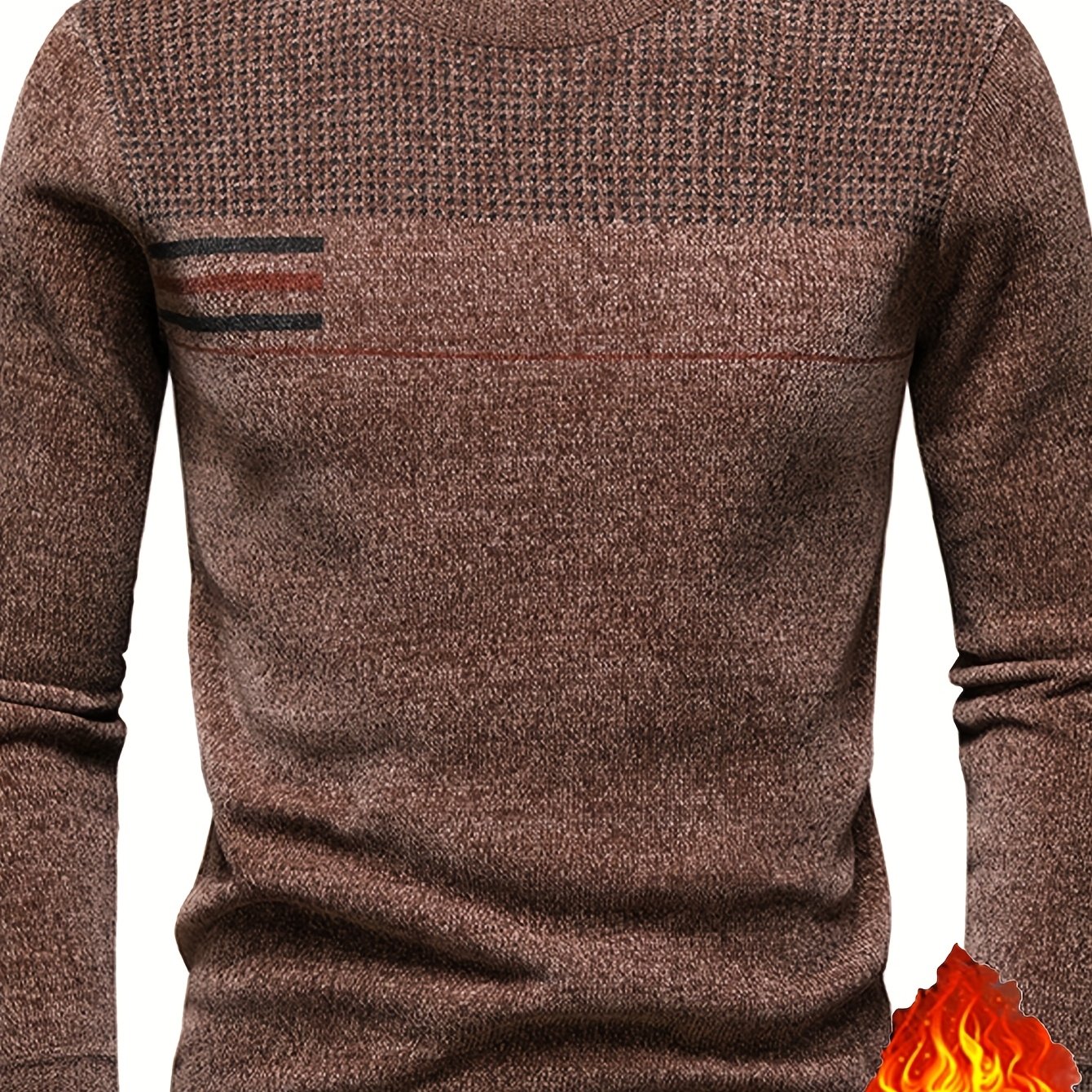 TEMU 남성용 겨울 두꺼운 스웨터 자켓형 풀오버 - 부드러운 샤넬 느낌의 , 플러시 따뜻한 긴팔 라운드넥 스웨터 코트, 세탁기 사용 가능한 캐주얼 겨울 의류 (벨트/타이 없음), 추운 날씨용, 다크 그레이/브라운