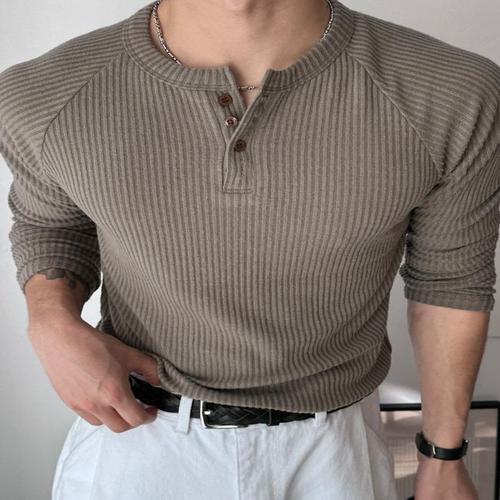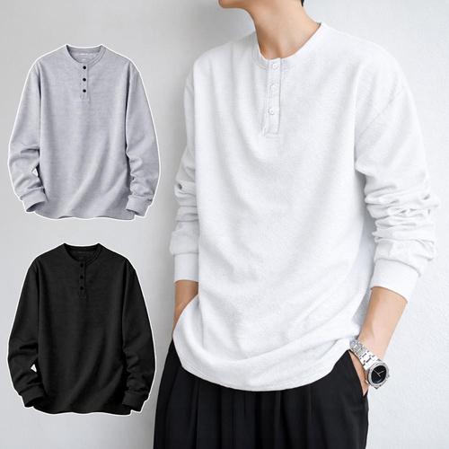 남성용 코튼 단추 긴팔 헨리넥 티셔츠, 캐주얼 단색, 통기성, 다목적 패션, 슬림 티셔츠, 가을 신상