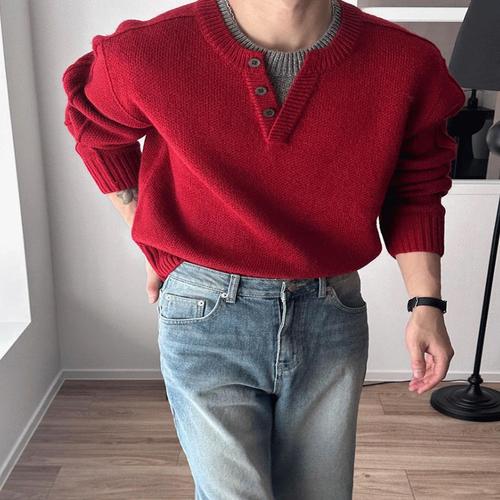 남성 가을 긴팔 무지 헨리넥 오버사이즈 골지 맨투맨