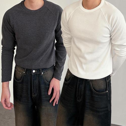 [패션큐브]머슬핏 골지 니트 3color 긴팔 어깨 절개 티셔츠 기능성 헬스티