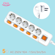 현대 이동식 멀티 콘센트 멀티탭 3구 5m 16A