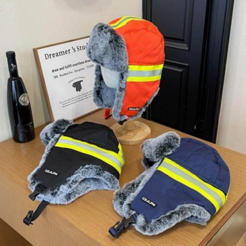 형광 반사 작업 모자 귀덮개 겨울 안전 털 WFLZP5E