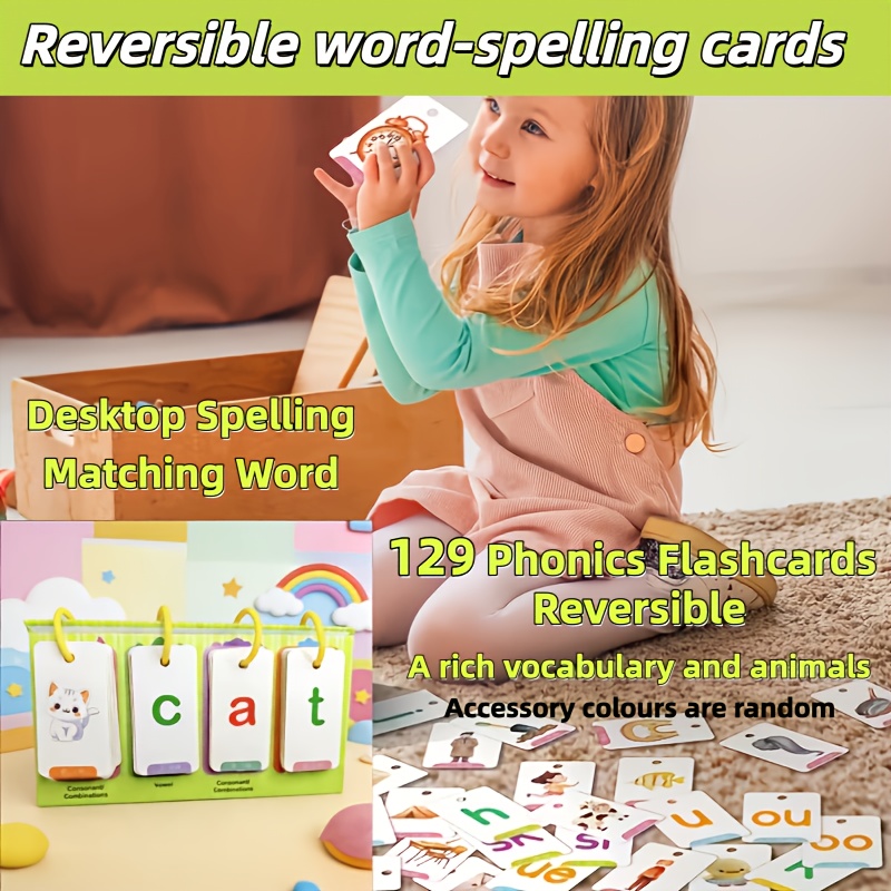 TEMU 129개 단어 맞춤법 게임 카드 세트, 탁상용 맞춤법 플래시 카드, 교실용 단어 맞춤법 교육 학습 도구, 가정 교육 파ων닉스 학습 도구, 학용품, 생일 선물