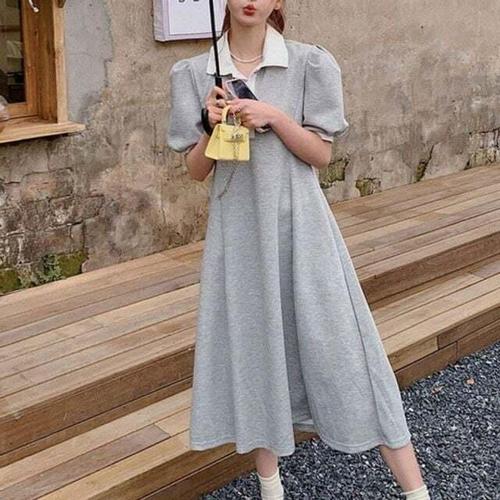 [셀럽하우스]로미홀리 TWFR3082 루즈 롱 반팔 원피스 호캉스 박시 하객 XL