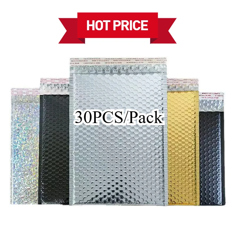 30개/팩 홀로그램 버블 메일러 패딩 봉투 방수 배송 가방, 자가 밀봉 두꺼운 봉투 우편용
