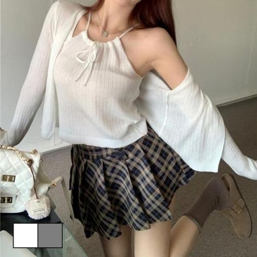 [엄지척]여자 2컬러 홀터넥 리본끈 나시 가디건 세트_19799308_667501