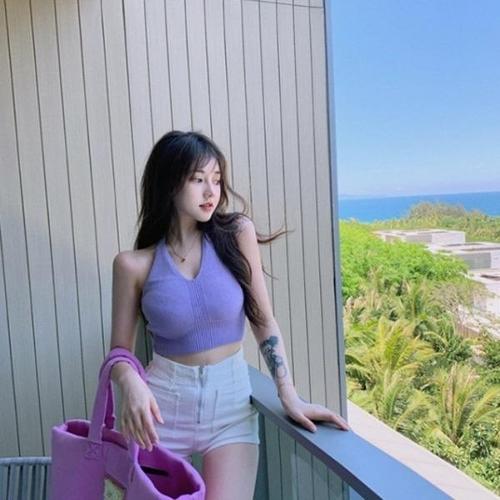 [엄지척]핫걸 홀터넥 니트 크롭 민소매 나시티 끈조절 휴양지_19680654_667501