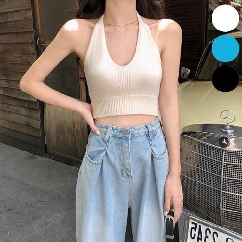 [엄지척]여자 니트 나시 끈나시 홀터넥 크롭티 백리스 휴양지_19677883_667501