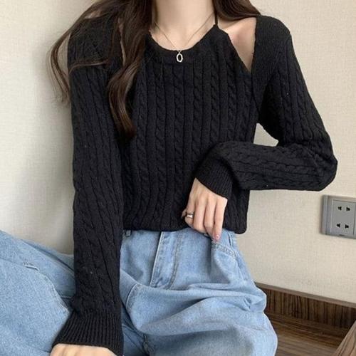 [엄지척]홀터넥 볼레로 꽈배기 긴팔 니트 캐주얼 여자 티셔츠_19626690_667501