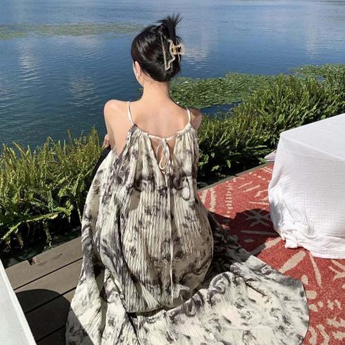 [셀럽하우스]마린 AJSZ9466 비치룩 슬리스 끈나시 원피스 플 S v넥 홀터넥